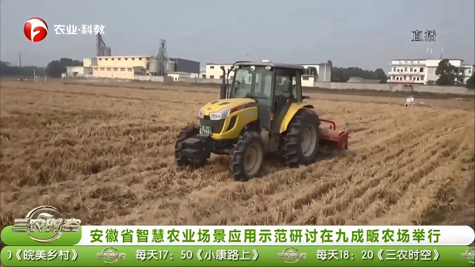 在九成畈农场智慧农业项目建设现场,大家实地观看无人机旋耕、辅助驾驶农机开沟,听取智慧农业现场介绍。
